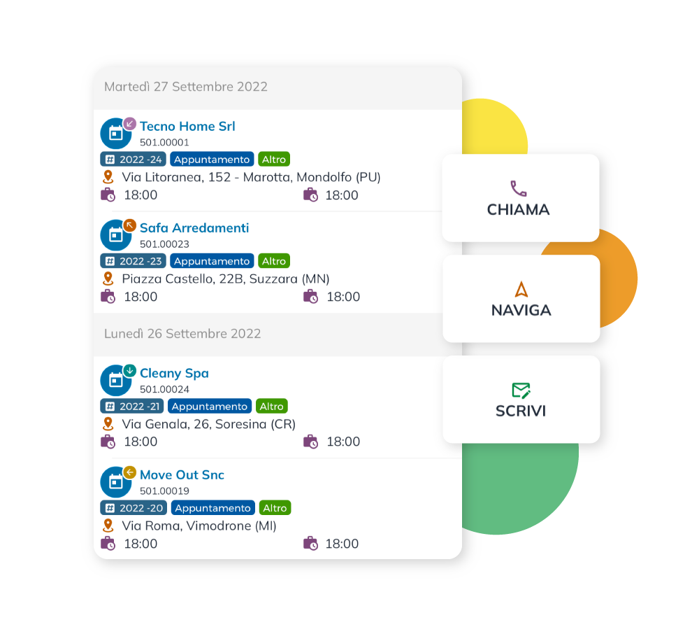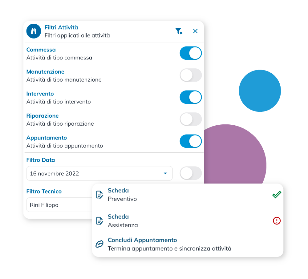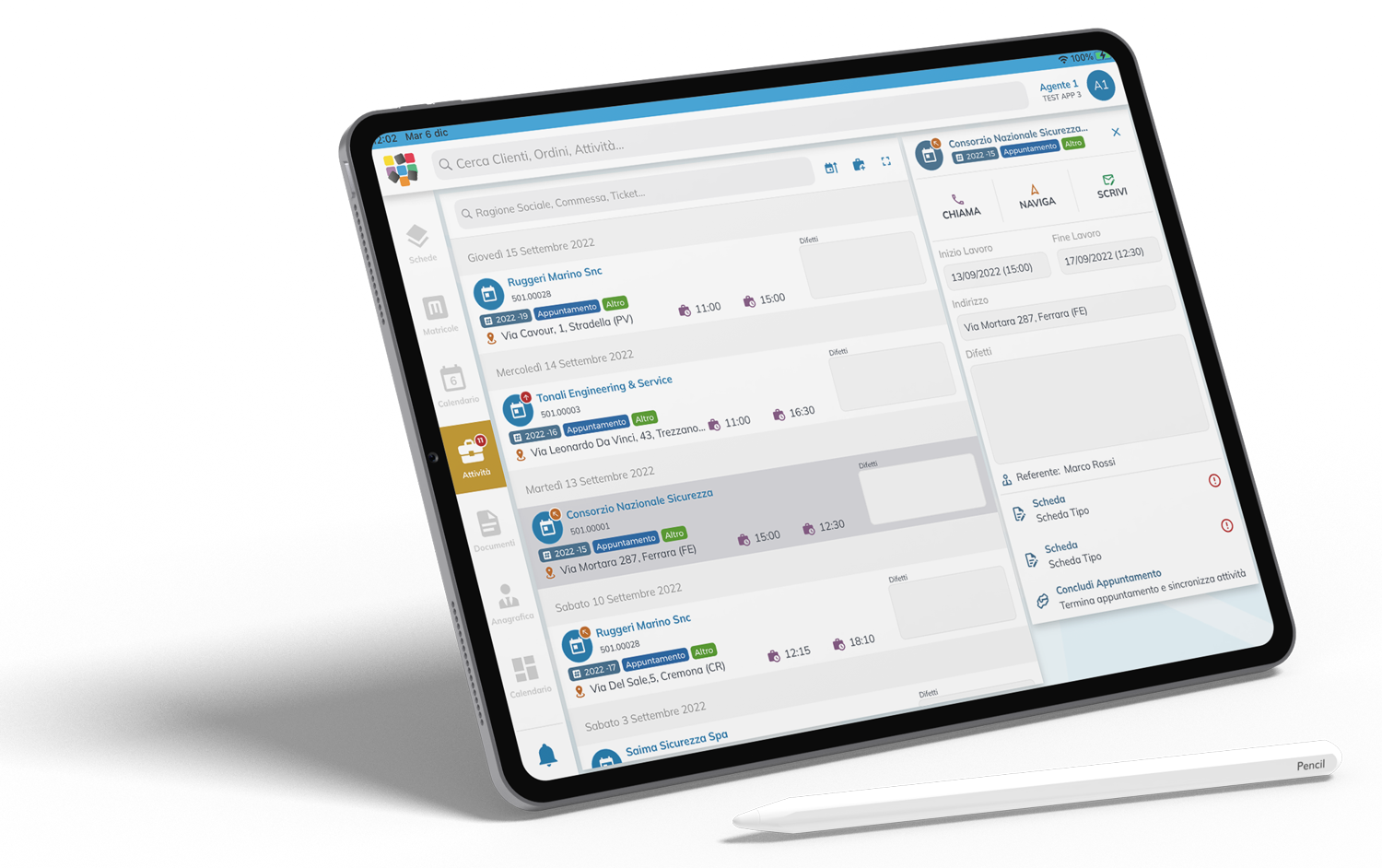 Per ogni attività o appuntamento ci sarà una scheda da compilare con dati necessari prima di dichiarare svolto quel task.