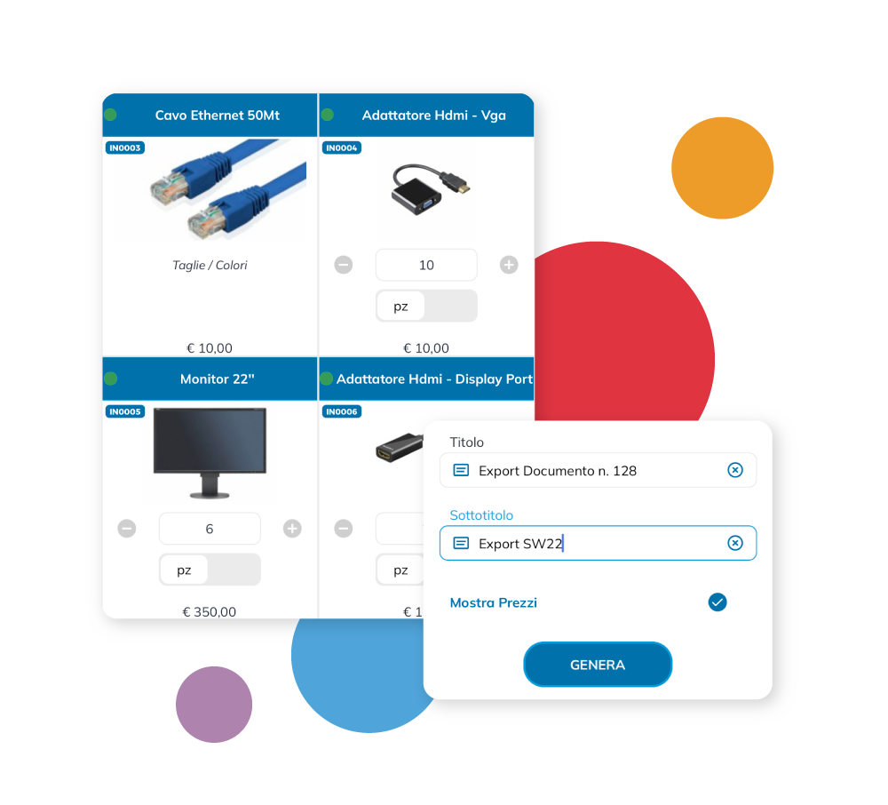 È possibile creare da ogni Documento, un file pdf pronto per l’esportazione e personalizzabile con logo e contatti della tua azienda.